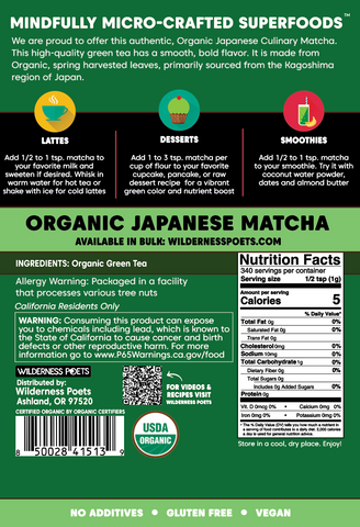 Matcha Green Tea Powder - Culinary Grade, Organic