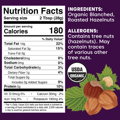 Ingredients: Organic Blanched, Roasted Hazelnuts